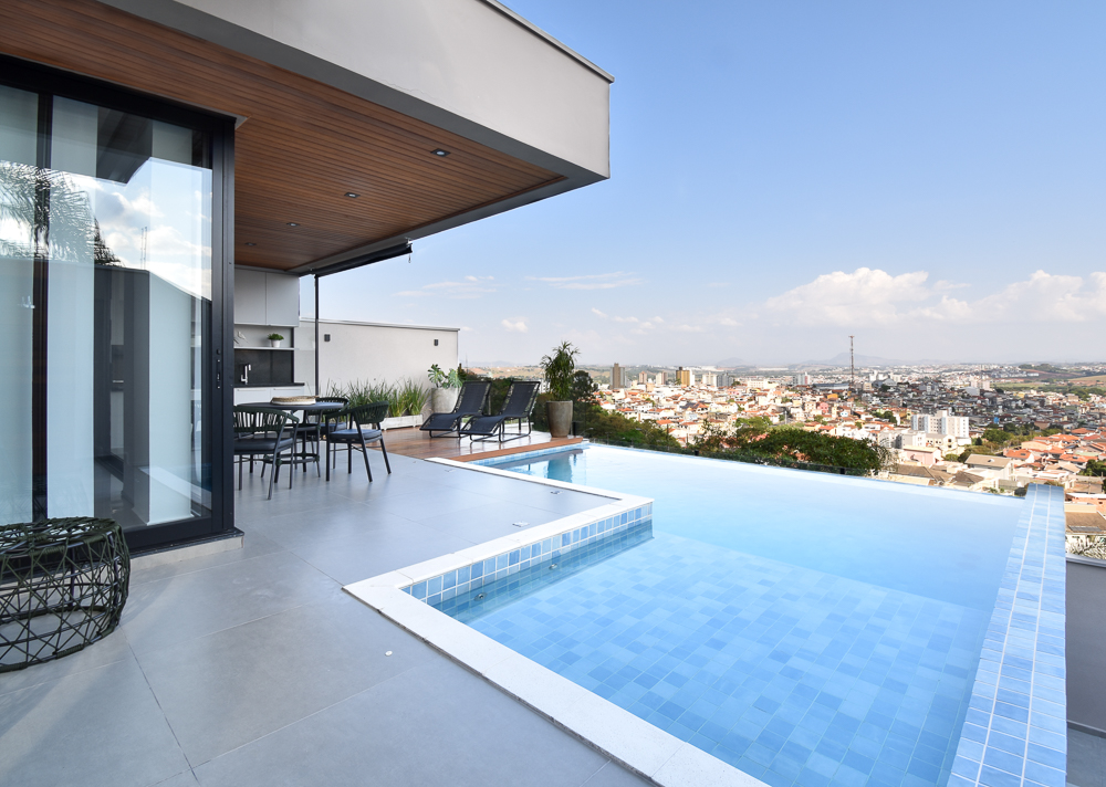 Neste projeto de arquitetura e interiores de alto padrão, cada detalhe foi pensado para a sofisticação e o conforto. A casa se abre para a paisagem através de uma área gourmet integrada à piscina com borda infinita, enquanto os interiores são marcados por uma marcenaria primorosa e uma paleta de materiais nobres que criam uma atmosfera única.